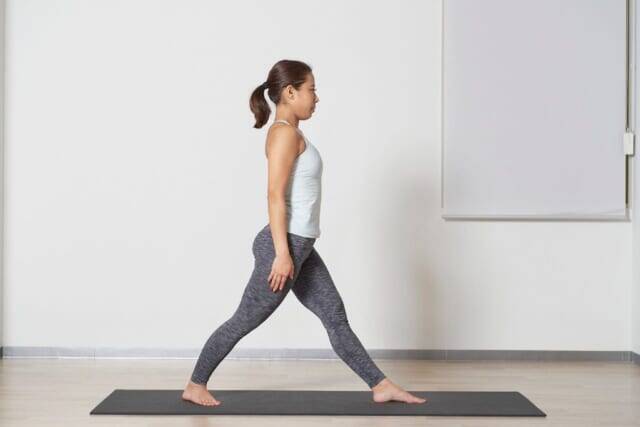 また、キープ時に背中が曲がっていたり、上半身を倒す前に腰が反ってしまったりするのはNG。お腹が引き上がっていないと、背中も曲がってしまうので注意が必要です。骨盤が開いてしまいやすい方は、後ろ脚を少し外側に向けると骨盤が開きにくくなるので試してみてくださいね。<ヨガ監修:Minami(インストラクター歴4年)>