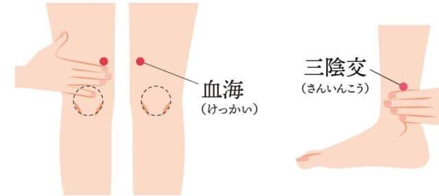 ツボ押しもおすすめ。試してほしいツボは「血海(けっかい)」と「三陰交(さんいんこう)」です。