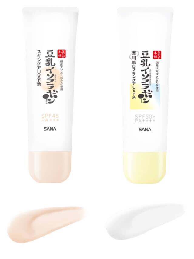 ▲(左から)サナ なめらか本舗 スキンケアUV下地 NC SPF45 PA+++ 50g ¥1,100(税込)、サナ なめらか本舗 薬用純白スキンケアUV下地 N【医薬部外品】 SPF50+ PA++++ 50g ¥1,210(税込) ※価格は編集部調べ