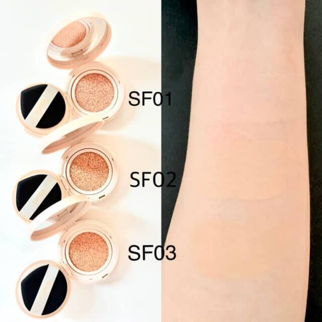 ▲エクセル「スキンフラッター セラムクッション」 全3色<SF01(ライトベージュ):ピンクよりの明るめカラー、SF02(ミディアムベージュ):やや明るめのカラー、SF03(ナチュラルベージュ):中間的な明るさのカラー> SPF50+ PA++++ 13g 各¥3,410(税込)、リフィル13g 各¥2,640(税込) ※編集部調べ