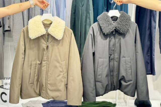 秋冬の主役アウターには、革新的素材PUFFTECH(パフテック)を使用した「パフテックジャケット」が登場。髪の毛の約1/5の細さの中空糸が空気を抱え込み、軽さと高い保温性を両立。ふわふわのフリース襟は取り外し可能で、シンプルにも華やかにも着回せます。