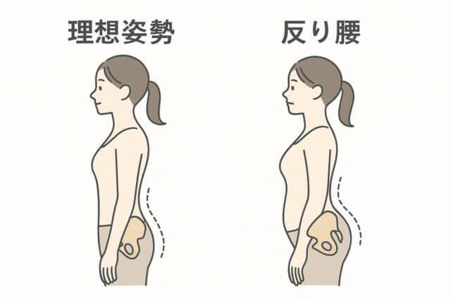 反り腰は「骨盤が前に傾いてしまう姿勢」のこと。本来、骨盤は少しだけ前傾しているのが理想ですが、座りっぱなしやハイヒールの習慣などで角度が強くなりすぎると、腰の反りが大きくなり、下腹が前に突き出たように見えてしまうのです。