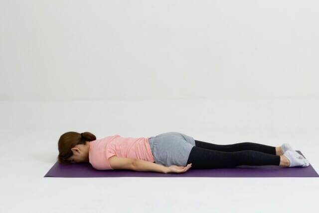 (1)床にうつ伏せになり、両腕を体に添える