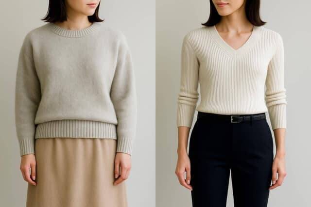ニットの着用時の見た目印象は、体型より“重心の設定”で変わります。今日のコーデに悩んだら、まずはウエスト位置と縦ラインを意識してみて。驚くほどスッキリ見えるようになるはずです。