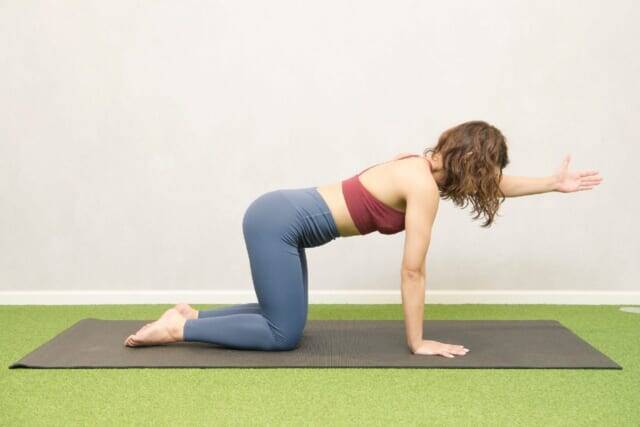 続けて反対側も同様に行い、“1日あたり5セットを目標”に実践します。なお、(3)の伸ばした腕と脚を引き寄せる動作がキツいなら、(2)の後に(1)に戻る形でOK。バランスが左右どちらかに偏っていたり、腕と脚を伸ばしきらずに曲がっていたりしないように注意しましょう。体幹が少しずつ目覚めると、姿勢のクセが整い、腰まわりのラインにも“良い変化”が芽生えてくるもの。負担のない範囲で、今日からゆるく始めてみてください。<ヨガ監修:Minami(インストラクター歴4年)>