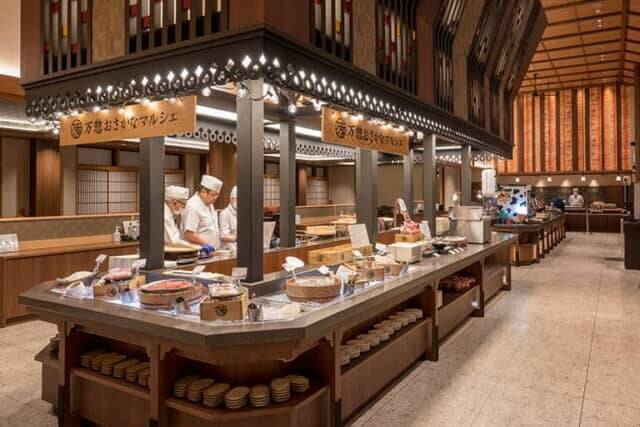 海の幸が豊富な函館ならでは、“朝市” の賑わいを思わせるダイニングは和洋折衷のデザイン。海鮮や地元グルメをそろえた2つのビュッフェ台が並び、職人が握る寿司コーナーとライブキッチンを設けた多彩なメニューが魅力です。