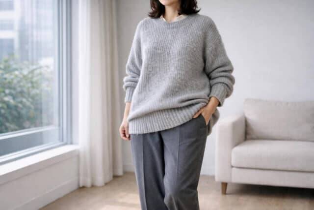 丈・縦ライン・重心バランスを意識するだけで、同じニットでも印象は驚くほど変わります。ざっくりニットを味方につけて、軽やかで洗練された大人コーデを楽しんでみてください。<text:ミミ 監修:YOMI(パーソナルスタイリスト)> ※画像は生成AIで作成しています