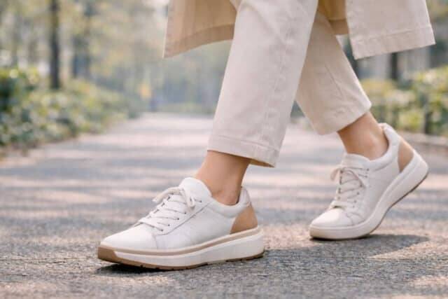 完全フラットや真っ白な定番モデルだと、どうしても数年前の印象になりがち。きれいめパンツやロングコートにもなじむデザインを選ぶことで、カジュアル感を抑えつつ、今の空気感を取り入れられます。