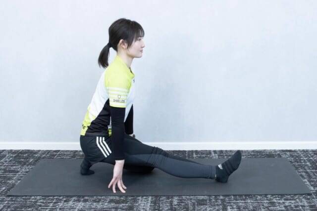 ▲ひざと上半身の距離が近いほど、ハムストリングスの伸びを感じられます