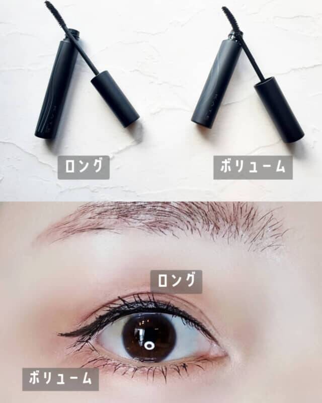 ロングタイプはセパレートロングブラシでダマになりにくく、自然に長さをプラス。ボリュームタイプはやわらかい繊維で束感のある仕上がりに。1度塗りでもしっかり存在感が出るのに、時間が経ってもにじみにくいのが印象的でした。
