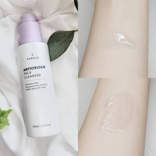 朝の洗顔でやりがちなのが「落としすぎ」。必要なうるおいまで奪うと、その後のメイク崩れにつながります。そこで取り入れたいのが、ジェルが泡に変化する2in1タイプ。タラジュの「アンチオキシジェン パッククレンザー」は、肌にのせて約1分おくと、きめ細かな泡へと変化し、寝ている間に出た皮脂や汚れを包み込むようにオフできます。