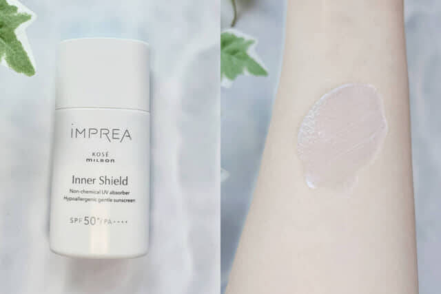 インプレアの「ミルキースフレ UV」は、ふんわり軽いスフレタッチが特徴の日焼け止め美容液。ノンケミカルかつ低刺激処方ながら、きしみ感のないなめらかな使い心地が印象的です。