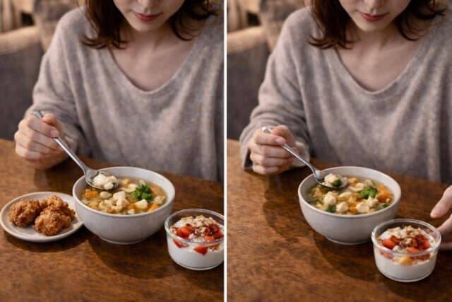 疲れているとき、しっかり食べる人もいれば、食欲が落ちる人もいます。どちらも自然な反応ですが、その後の体調や体型に差が出ると感じたことはないでしょうか?実は、この違いを分けているのは「食べるか食べないか」ではなく、“疲れているときの食べ方”にあると考えられています。