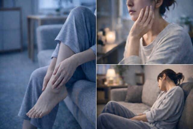 ▲朝は顔まわりの違和感が気になり、日中は脚の重さを感じ、夜はソファに座ったまま動けなくなるような不調が続いていたそう