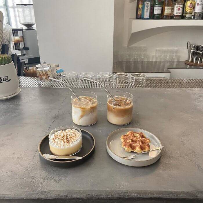 初めにご紹介するお店は、不動前にあるカフェ『TONER(トナー)』。白と木とコンクリートで統一された店内が正に韓国のカフェに来ている気分。お皿やグラスもお店の雰囲気にマッチしていて目に映るもの全てがお洒落な空間。
