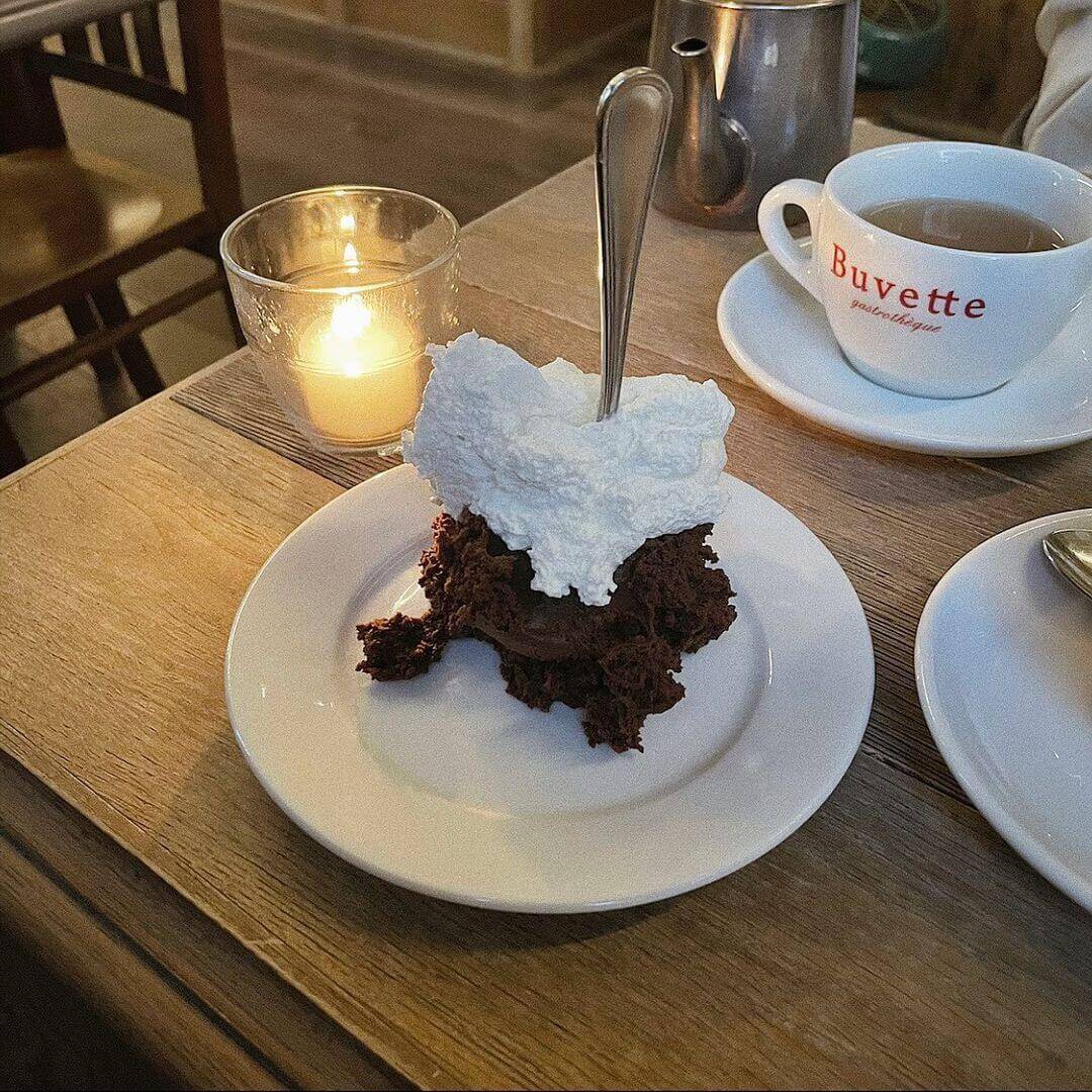 初めにご紹介するのは、ミッドタウン日比谷の中にあるカフェ『Buvette Tokyo(ブヴェットトウキョウ)』。濃厚すぎると話題の絶品チョコムースの上に、たっぷりと盛り付けられた生クリームが、食欲をそそる一品。店内も海外チックで、雰囲気がいいので、デートにもオススメのお店。チョコレートムースの美味しさを引き立てる絶品クリームとの最強タッグで、虜になる人が続出しているみたい。