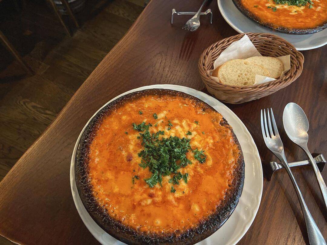 27年続く名物ラザニアは、ずーっとあつあつ!バケットでソースをすくって食べるスタイルで、ひと口食べた瞬間に納得するおいしさだとか。ラザニアはオンラインでも購入可能だけど、まずはオシャレなお店で熱々をいただくのがおすすめ。