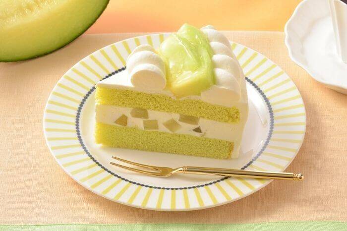 香り高く爽やかな甘みの熊本県産「アンデスメロン」を上面に飾った季節限定のショートケーキ。芳醇な青肉メロンゼリーと、メロンと相性のよいカスタード入り練乳クリームをサンド。