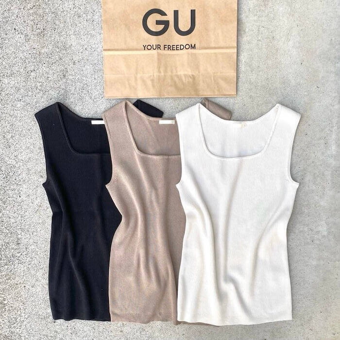 そこで今回は、『GU』の「リブスクエアネックニットタンクトップ」をご紹介します。