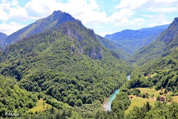 長さ80キロにもわたって続くヨーロッパ最大規模の渓谷が、ドゥルミトル国立公園内にあるタラ渓谷。700種以上もの植物やカモシカをはじめとする動物が生息する、まさに生態系の宝庫です。険しい山々が織りなす渓谷は最も深い所で高度差が1300mにもなり、谷底にはエメラルドグリーンに輝くタラ川が流れています。