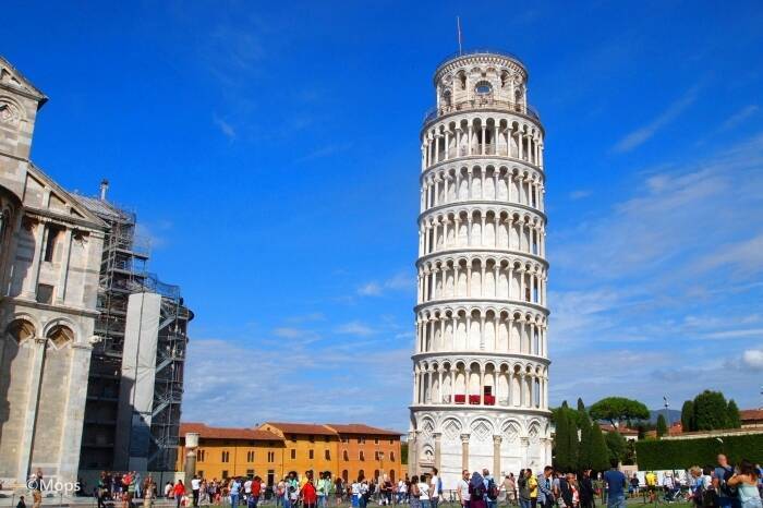 ピサの斜塔はわざと斜めに建設された訳ではなく、地盤沈下によるもの。塔の建設は1173年に始まりますが、12年後の1185年には地盤が沈下して既に傾き始めていたというのです。塔はこの時3階部分まで完成していましたが、傾きのため工事は一時中断。