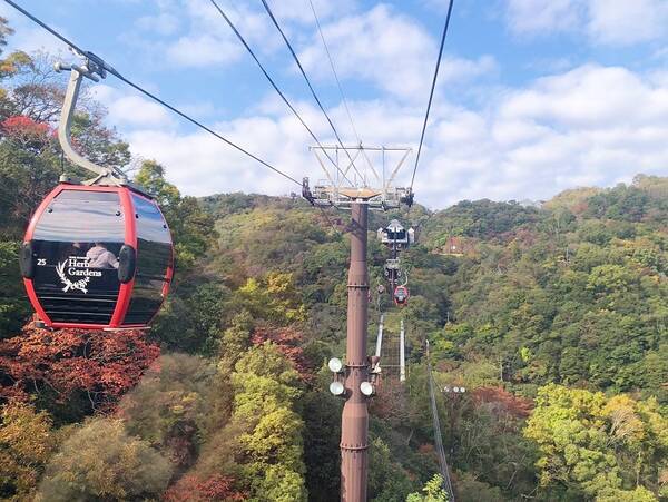 「神戸布引ハーブ園」の一つ目の魅力は、都会からのアクセスが簡単なことです。新幹線と神戸市営地下鉄の停車駅である新神戸駅からロープウェイに乗り換え、ハーブ園がある山頂まで一気に登ることができます。ロープウェイからはどんどん遠くなっていく神戸の都会の景気を眺めることができ、非日常感を味わうことができます。
