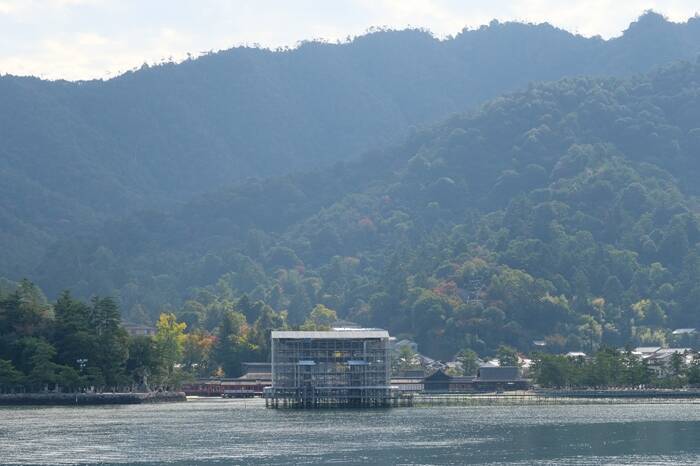 宮島のシンボルである大鳥居が見られないとなると、大鳥居以外の宮島の魅力が心に入り込んでくるから不思議です。穏やかな波の上を行き交う船や、海上に浮かぶように建てられた朱色の社殿を眺めていると、心がふっとほどけていくような感覚に包まれました。