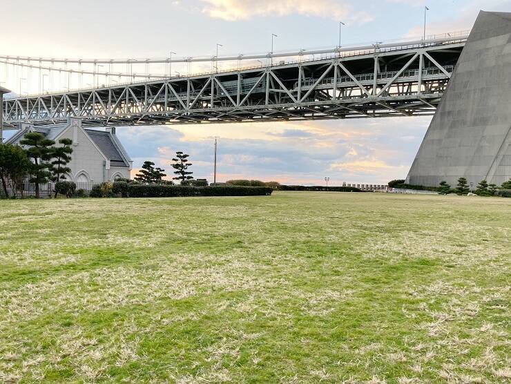 記念碑や歴史ある建物はもちろんですが、舞子公園の最大の魅力は、明治天皇が愛したことからも明らかなように、やはりそこから見える絶景でしょう。朝方や日中は晴れていれば対岸の淡路島を一望することができ、悠々と海峡を行き交う船や橋の上を渡っていく飛行機を眺め、ゆっくりとした時間を過ごすことができます。