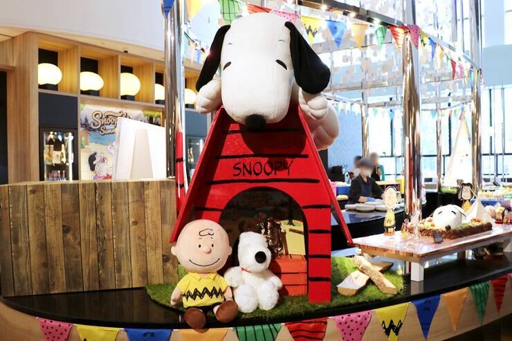 スヌーピーと仲間たちが森でキャンプをしながら楽しくひと夏を過ごしている世界観をスイーツで表現した、ヒルトン名古屋とPEANUTSの初めてのコラボレーションとなるスイーツビュッフェ。