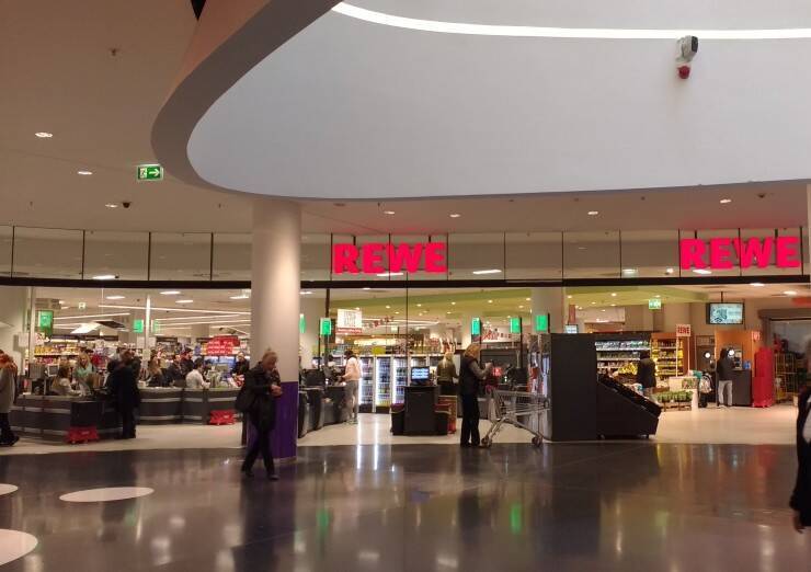 REWE(スーパー) 7:00~24:00(月~金)、7:00~23:30(土)
