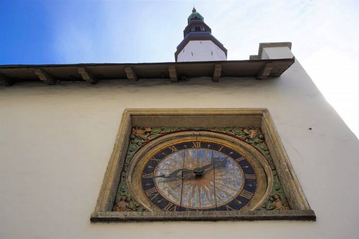 大ギルドの会館のすぐ向かいに位置する教会。市庁舎および聖霊教団救貧院の礼拝堂として建てられたもので、14世紀のはじめにはすでに記録に残っています。