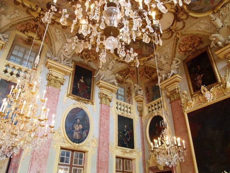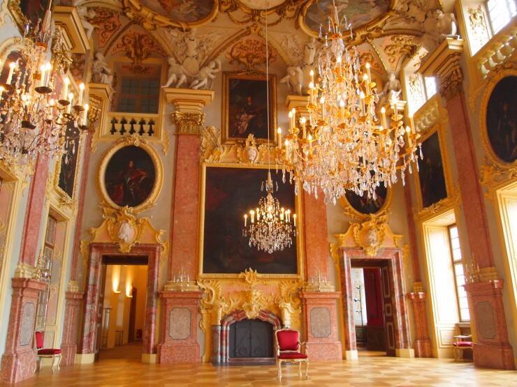 「祖先の間」では、金や大理石を贅沢に使用した壁の所々に、辺境伯に伝わる祖先の肖像画が見られます。その美しさは、おもわずため息が出てしまうほど。