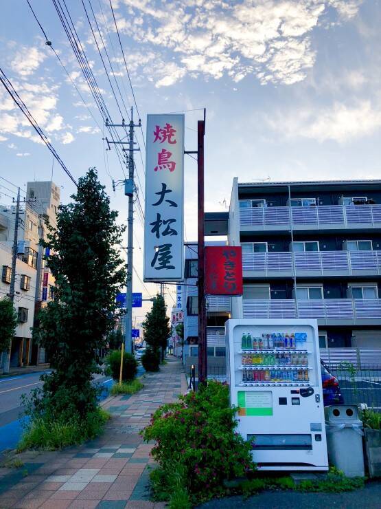 東松山駅東口を出て、徒歩8分の場所、やきとりの文字が書かれたのれんを掲げる「大松屋」は、この地で創業し、今年で62年を数える老舗中の老舗。