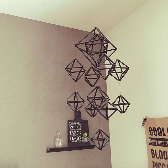黒が好きなkaori_____nさんは、モビールも黒で統一されています。影が魅力的だというこちらの作品は、ストローで作られているそうです。ストローの長さを上手く利用して、立体の大きさを変えたところがGood。