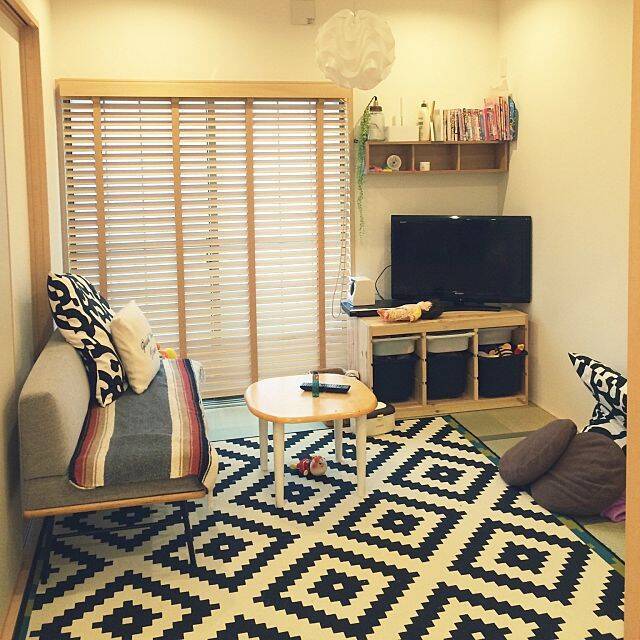 リビングに続く和室のキッズスペースは、ふすまを外されています。開放的なひとつの空間のようです。北欧ナチュラルな家具や雑貨があるので、畳にトロファストを置いても、違和感が全くありません。和室ということを忘れてしまいそうです。