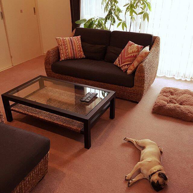 アジアン家具でも今特に人気なのがウォーターヒヤシンスを使ったものです。中でもウォーターヒヤシンスのソファーやデイベッドが人気です。ウォーターヒヤシンスとは水草の一種です。ラタンと似ていますがササクレができにくく、丈夫で重厚感があるのが特長です。こちらのソファーもどっしりと重厚感がありますね。