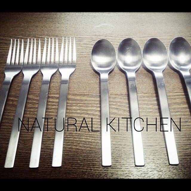 ナチュラルキッチンで購入された、シンプルさが魅力のカトラリー。丸みのあるフォルムとマットな質感が、独特の味を出しています。カレーやサラダなどどんなお料理にでも馴染むので、普段使いにおすすめです。saibabaさんのような木目のテーブルや、麻のマットなどナチュラル素材と合わせて使いたいものです。