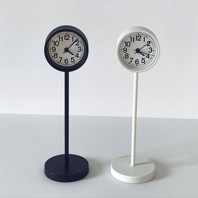 無印良品の「公園の時計」はミニ置時計で、定価2,500円。公園にあるポールの上に丸時計がついたフォルムを、そのままミニチュアにしたようなキュートなデザインです。カラーは、ホワイト、ブラック、ブラウンの3色です。