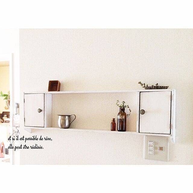 一見すると、壁に設置された飾り棚にしか見えない、こちらの棚。実はインターホンと給湯器スイッチのカバーになっているのだそう!シャビー感のある雑貨や扉の取っ手が素敵ですね。余白を残した飾り方や、棚の色の塗り方などのこなれた雰囲気、参考にしたいです。