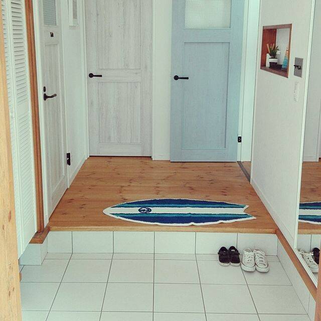 こちらは、西海岸風スタイルを意識したマット。サーフボードの形がなんともユニークです。さわやかなブルーと白の配色が、夏の時期にもぴったりですね!ニトリの玄関マットには、こんなふうに、今旬のスタイルを取り入れたものもあります。
