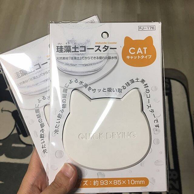 大人気の珪藻土グッズも、100円ショップで飼うことができます。こちらは、「シルク」で手に入れた珪藻土のコースター。愛らしい猫モチーフには、思わず一目ぼれしてしまいますね。