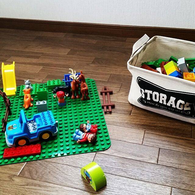 おもちゃ収納は、お子さん自身が扱いやすいものを選ぶことが大切です。yayoiさんは、LEGOブロック収納に使われています。ボックスそのものが軽いので、ブロックを入れても、持ち手をしっかり握って持ち運びができます。プチプラかつ布製なので、お子さんの扱いに神経質になることもなさそうです。