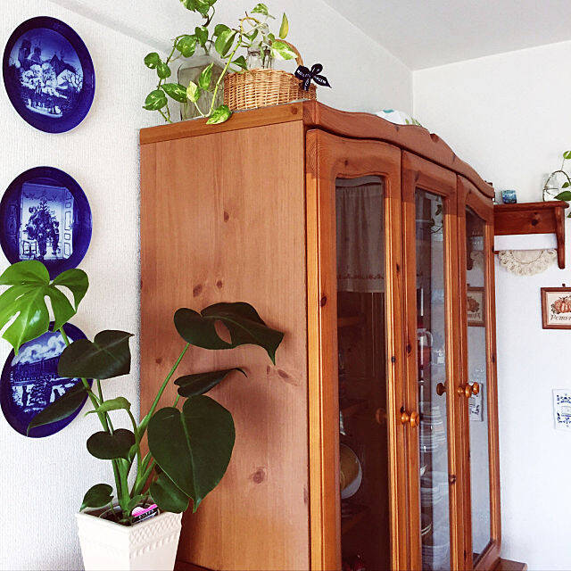 こちらは、ユーザーさんのご実家とのこと。整然と並べられたイヤープレートは圧巻の一言で、いつまでも見ていたくなります。壁の淡い黄色とロイヤルコペンハーゲンのブルーの組み合わせが、とても上品ですね。雑貨も多く置いてありますが、ホワイトとブルーをメインで使うことでまとまった印象となっています。