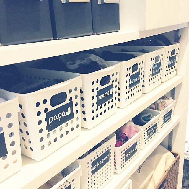 umekichiさんは、家族一人一人に専用の靴下ケースを設けています。ケースはすべてパントリーに収納し、洗濯後にしまうのも楽々な工夫をされていました。靴下の数や、汚れや破れなどの状況も、家族分をパッと把握することができて便利ですね。