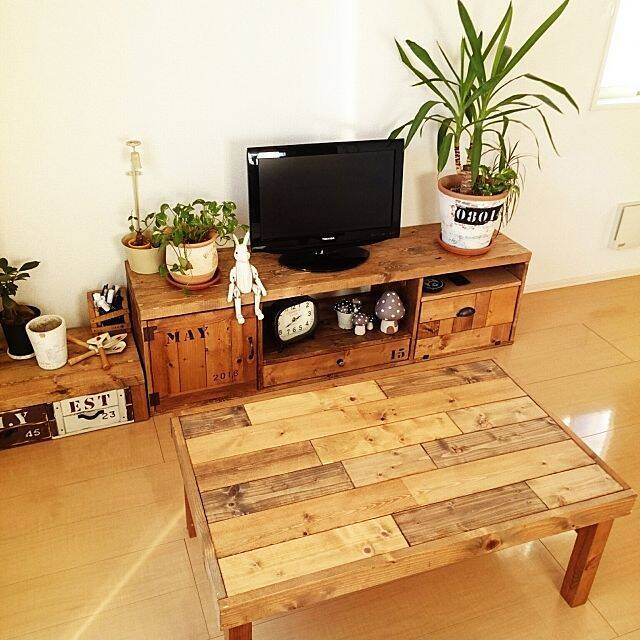 こちらのユーザーさんは、パレットをリメイクしてローテーブルをDIYされています。プチプラとは思えないDIY作品です。パレットの日焼け具合と、ユーザーさんのお部屋のインテリアスタイルが見事にマッチしていますよね。ディスプレイもとってもキレイで、ユーザーさんのセンスに感激です!!