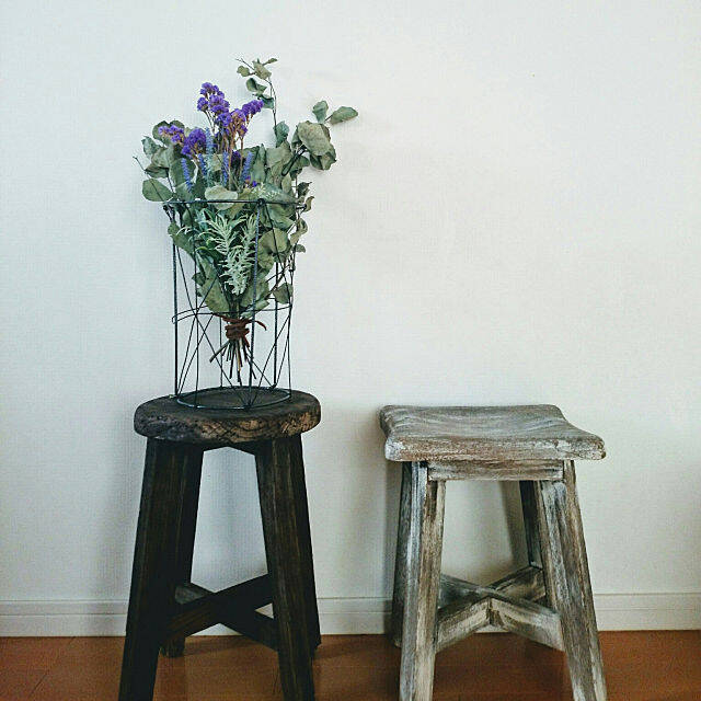 すのこと角材だけで作ったという、落ち着いた雰囲気のベンチ。こちらのユーザーさんのお部屋はナチュラルな木の家具や雑貨が多くて、ほっとする空間になっています。このベンチに座っていると、気持ちも穏やかになってきそうですね。