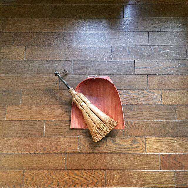 毎日使う日用品には、長く使い続けることができるフォルムと飽きのこない美しさを感じます。最初に毎日の掃除で活躍してくれる美しい日用品をご紹介しましょう。こちらのユーザーさんは「山本勝之助商店」の棕櫚(シュロ)を素材にした「三玉荒神箒」と「白木屋傳兵衛商店」の紙製ちりとり「はりみ」を愛用中です。