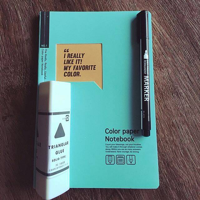 こちらのユーザーさんは、ダイソーでのりなどの文房具をゲット。三角形ののりは机の上で転がらず、角で細かいところも塗りやすいという便利なアイテムです。マジックやノートもそろえて置くと、まるで雑貨ショップのアイテムのような雰囲気ですね。
