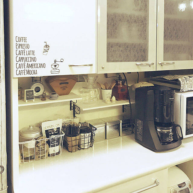 コーヒーメーカーが自宅にあれば、飲みたいときにいつでもコーヒーを淹れられます。hikaさんは、パナソニックのNC-A56-Kを愛用されています。ホワイトを基調に、すっきりまとまったコーナーですね。豆をセットするだけで、おいしいコーヒーが淹れられるとあって忙しい方にもとっても便利です。