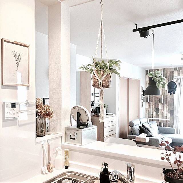 優しい色調でそろえられているmomoranさんのインテリア。トタンボックスはクールな印象なので、一見北欧系には合わないのかと思いきや!とてもしっくりきていますね。シルバー系が多い炊飯器やトースターともカラーが近く、目立たず溶け込むような工夫がなされています。